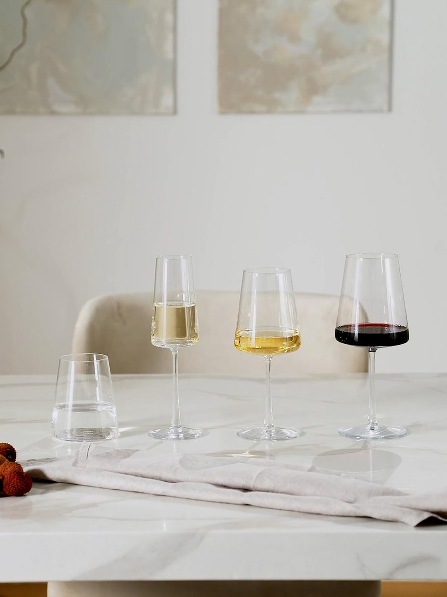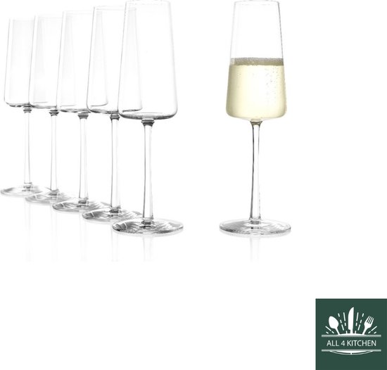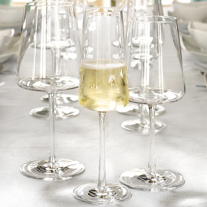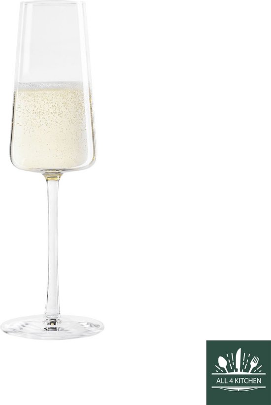 Champagne glazen van de Power Serie. Is geschikt voor rijpe champagnes en mousserende wijnen, zoals echte Champagne uit Champagne, Franciaporta, edele Spumanti. Ook geschikt voor champagnecocktails. POWER Een krachtig, puristisch en expressief design kenmerkt de POWER glazen van Stölzle Lausitz. De buitenkanten van de trapeziumvormige kelk zijn recht, de basis van de kelk is plat. Deze vorm geeft de wijn een maximaal oppervlak om te ademen, vooral wanneer er een relatief kleine hoeveelheid in het glas wordt gegoten. Dit komt de aroma- en smaakontwikkeling van de wijn ten goede. De POWER kelken hebben een getrokken steel die licht taps toeloopt van de bodemplaat naar de bovenkant, wat ze er niet alleen bijzonder elegant laat uitzien, maar het glas ook een grote stabiliteit geeft. Awards: POWER van Stölzle Lausitz werd bekroond met de German Design Award 2018 en de Industrie Form iF Design Award 2018 voor zijn uitstekende designkenmerken. Gekleurde glazen: Bij de gekleurde glazen zijn de buitenkanten bedekt met organische kleur.