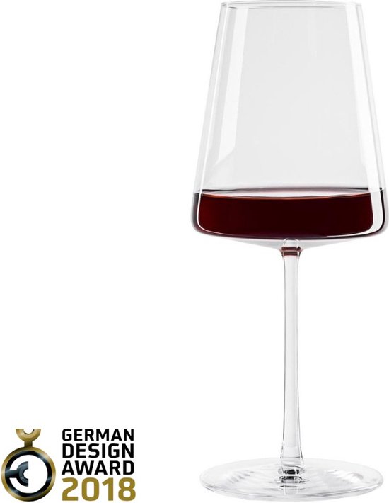 De rode wijnglazen van de Power serie. Is geschikt voor klassieke rode wijn met veel body zoals Chianti Classico, Chianti Riserva, Montepulciano, Barbera, Zweigelt. POWER Een krachtig, puristisch en expressief design kenmerkt de POWER glazen van Stölzle Lausitz. De buitenkanten van het trapeziumvormige glas zijn recht, de basis van het glas is plat. Deze vorm geeft de wijn een maximaal oppervlak om te ademen, vooral wanneer er een relatief kleine hoeveelheid in het glas wordt gegoten. Dit komt de aroma- en smaakontwikkeling van de wijn ten goede. De POWER glazen hebben een getrokken steel die licht taps toeloopt van de bodemplaat naar de bovenkant, wat ze er niet alleen bijzonder elegant laat uitzien, maar het glas ook een grote stabiliteit geeft. Awards: POWER van Stölzle Lausitz werd bekroond met de German Design Award 2018 en de Industrie Form iF Design Award 2018 voor zijn uitstekende designkenmerken. Gekleurde glazen: Bij de gekleurde glazen zijn de buitenkanten bedekt met organische kleur.